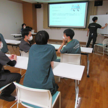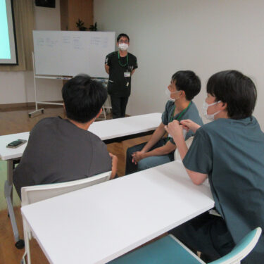 3つのグループに分かれ、活発な意見交換を行いながら、日頃の研修や勉強会の知識を生かしながらしっかりと一人一人が自分の考えを述べていました。