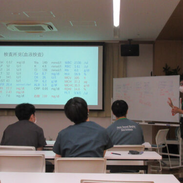 令和7年11月7日(金)午後5時30分より、5階第1会議室において「第188回救急症例検討会」が開催され、1年次研修医の石川大輝先生がプレゼンテーションを行い、司会進行を総合診療科主任部長菅藤賢治先生が担当しました。